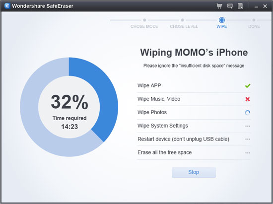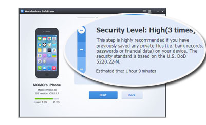 Low (1 pass) - Erase your iPad, iPhone and iPod data with fastest speed. This mode can greatly save your time.