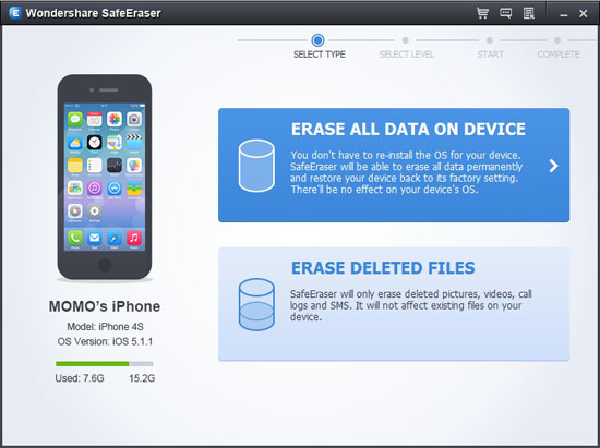 Tips: Back up the data that you don't want to lose before erasing the iDevice using this program.