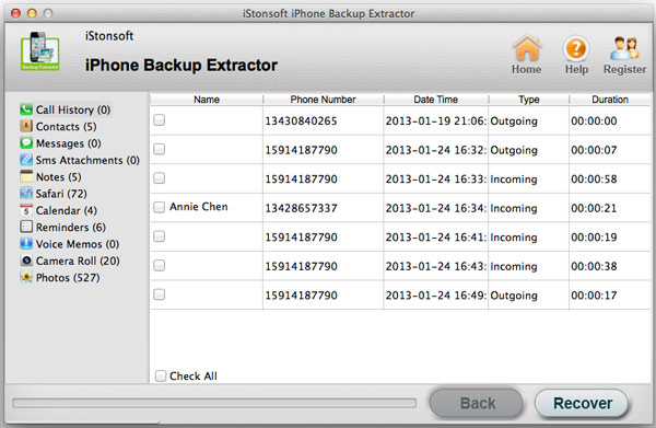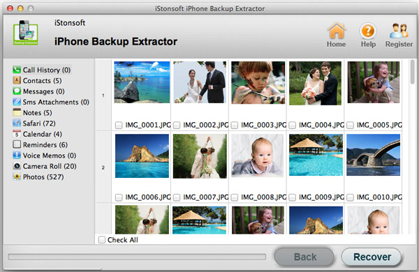 With iStonsoft iPhone Backup Extractor, you will be far away from the troublesome iOS data loss. This application bears the ability to recover lost iPhone/iPod/iPad data including SMS, Camera Roll, Call History, Voice Memo, Contact, and more. No matter your device is lost, stolen, severely damaged, or just went kaput, all data can be got back easily and perfectly.
