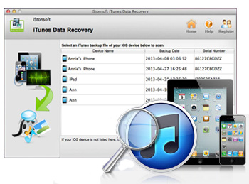 iStonsoft iTunes Data Recovery for Mac is compatible with all versions of iPhone, iPad and iPod, including iPhone 5/4S/4/3GS, iPad 2/1, iPad Air, the New iPad, iPad mini, iPad 4 and iPod touch, iPod touch 4, iPod Shuffle, iPod Nano 3/4/5/6, and iPod Classic. More, it supports the latest iOS 6. And we will continue to upgrade the software to keep synchronous with the releasing of new Apple products.