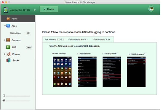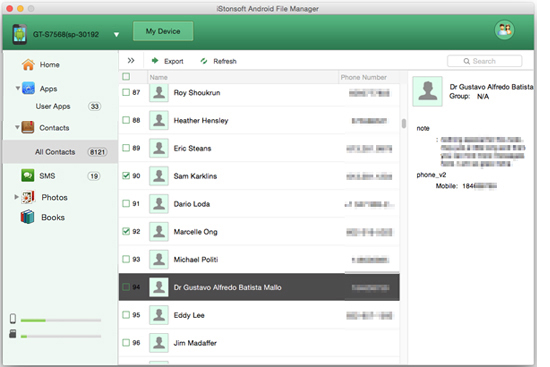 * Simply press "Backup" button in the main interface, you can backup everything, including contacts, SMS, apps, books, photos, media file and more on Android phones, tablet PCs, etc. to your Mac effortlessly.