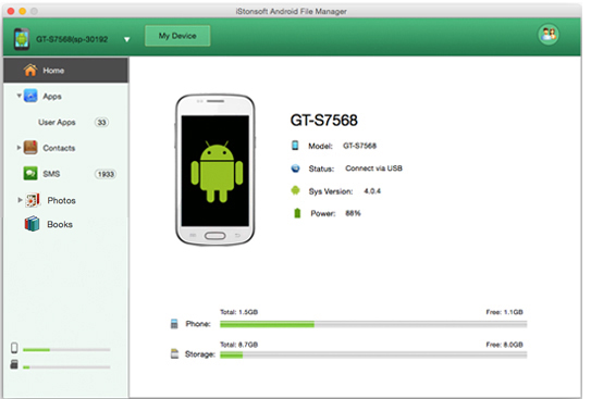 Want to backup your data from your phone to computer so that you can free up space for more media? Backup the whole contents from your Android phones or tablets to Mac hard disk can greatly reduce the possibility of losing data on your device by accident. And it is not only a simple way to release more space, but also a good way to share your photos, or other files with others on the desktop computer. That's why this Android File Manager for Mac comes here.
