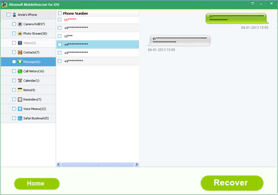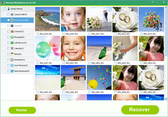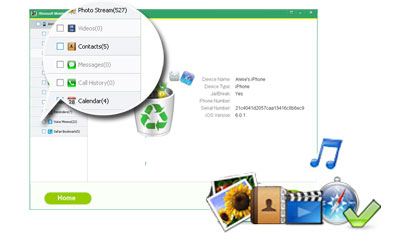 Recover up to 10 types of files from iDevices, including SMS messages, contacts, call history, safari, notes, calendar, reminders, voice memos, photos, SMS attachments, etc.