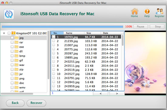 In order to simplify the process, developers have created a kind of program called USB Data Recover - Data Recovery or USB data Recover for Mac - Data Recovery for Mac for different platform users. This kind of software has the ability to get back files lost due to accidental deleting, formatting, virus infection, improper operation, unexpected power failure, and other unknown reasons. You can let it to recover specific images, videos, music, documents and archive files according to your needs. Here is a simple guide of this nice software to recover deleted files from your USB flash drive on Ma.