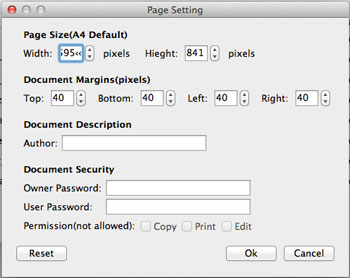 Please note: If you want to make page settings, just click the top manu bar to select "iStonsoft MOBI to PDF Converter for Mac > Preference". A popped-up dialog-box allows you to set Page Size, Document Margins, Document Description, Document Security for export PDF.
