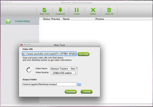 Install this software to your Mac computer. Double-click the quick-start icon to run the software. On the toolbar of this software, you can see options like New Task, Download, Pause, Delete, Clear All.